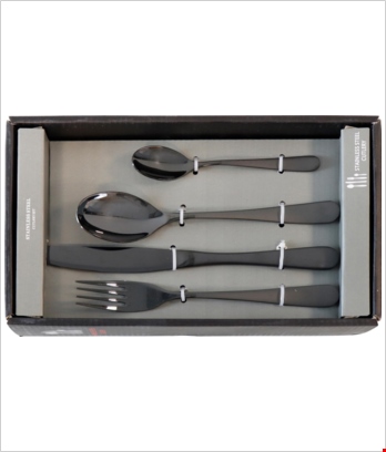 Box: 28×16,5x7cm, Gabel: 19,5cm, Messer: 23cm, EISEN